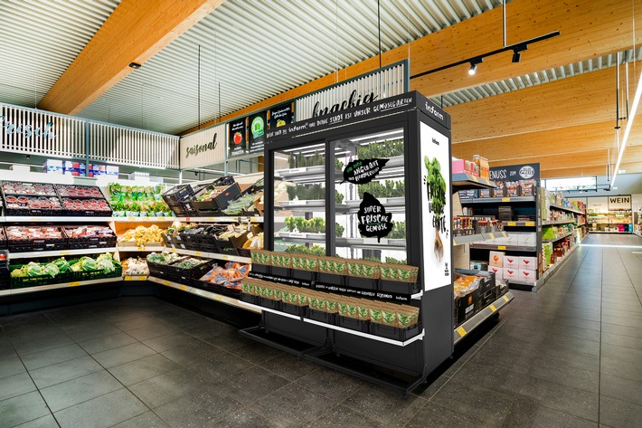 ALDI SÜD erweitert das Frischeangebot im Obst- und Gemüsebereich um Kräuter, die lokal in den Filialen heranwachsen. Dafür setzt der Discounter auf den Trend „Indoor Farming“ und stellt in seinen Filialen Kräuter-Kleingärten in Form von transparenten Glasschränken auf, in denen zunächst sechs verschiedene Kräutersorten zu finden sind. Die Kräuter sind für jeweils 0,99 Euro erhältlich. „Unsere Kunden können den Kräutern beim Wachsen zusehen. Sie werden in unseren Filialen angebaut und geerntet – frischer geht’s nicht“, so David Labinsky, Group Buying Director bei ALDI SÜD. „Durch unsere Partnerschaft unterstützen wir ALDI SÜD nicht nur dabei, die Lieferkette zu reduzieren, wir bauen auch ein Farming-Netzwerk in Deutschland und auf der ganzen Welt auf“, so Erez Galonska, Mitgründer und CEO von Infarm. „Damit machen wir möglich, was immer mehr Menschen nicht nur von ihrer Erfahrung im Lebensmitteleinzelhandel erwarten, sondern sich auch für unseren Planeten wünschen: Nachhaltige, lokale Premium-Qualität und erstklassigen Geschmack, zugänglich und erschwinglich für alle.“