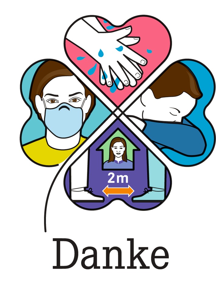 „Dass ein Kleeblatt wirklich Glück bringt, braucht bekanntlich vier Blätter. Das sind auf Corona bezogen der ausreichende Abstand zu anderen Menschen, die Husten- und Nies-Hygiene, natürlich das regelmäßige und gründliche Händewaschen und das Tragen eines Mund-Nasen-Schutzes.“