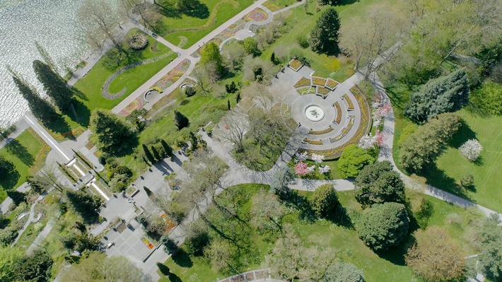 „Corona-Land von oben“ schaut aus der Vogelperspektive auf ein Land zwischen Lockdown und Lockerungen: Die Blumeninsel Mainau in einsamer Blütenpracht, das gläserne Porsche-Werk in Leipzig, in dem die Bänder stillstehen, und die leeren Strände von Usedom lassen noch einmal die zurückliegenden Krisenwochen Revue passieren.