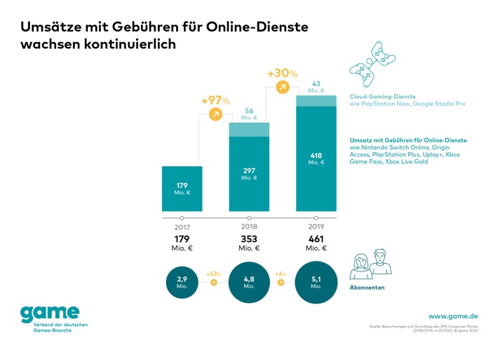 – 461 Millionen Euro mit Gebühren für Online-Dienste umgesetzt – Über 5 Millionen Menschen in Deutschland zahlen für Online-Dienste – Deutscher Games-Markt durchbricht 6-Milliarden-Euro-Grenze