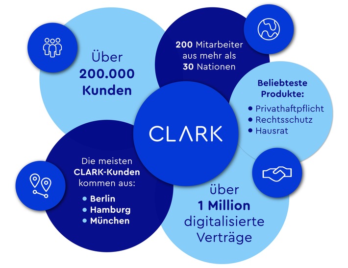Der digitale Versicherungsmanager CLARK feiert ein kleines Jubiläum: Seit fünf Jahren ist das Insurtech bei der Digitalisierung der Versicherungsbranche vorne mit dabei. Bereits mehr als eine Million Verträge wurden mit der App digitalisiert. Seit 2015 können CLARK Kunden ihre Versicherungen per App oder am Computer digital managen und verbessern. Ein Service von dem mittlerweile mehr als 200.000 Kunden in Deutschland Gebrauch machen und der CLARK zum führenden digitalen Versicherungsmakler in Deutschland macht. Zuletzt expandierte das Unternehmen im April dieses Jahres nach Österreich und beschäftigt derzeit insgesamt rund 200 Mitarbeiter an seinen vier Standorten in Frankfurt am Main, Berlin, Wien und Püttlingen.