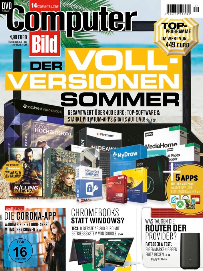 COMPUTER BILD ist die meistverkaufte Computerzeitschrift Europas und bietet ihren Lesern seit mehr als 20 Jahren jeden zweiten Freitag umfangreiche Informationen und News über alle digitalen Trends. Die Tipps und Tricks zu allen aktuellen Produkten und die besten Kaufberatungen sind dank COMPUTER BILD-Testlabor einzigartig. Exklusive Premium-Apps, interessante Gadgets und viele weitere Gratis-Mehrwerte runden das Hefterlebnis für die Leser ab.