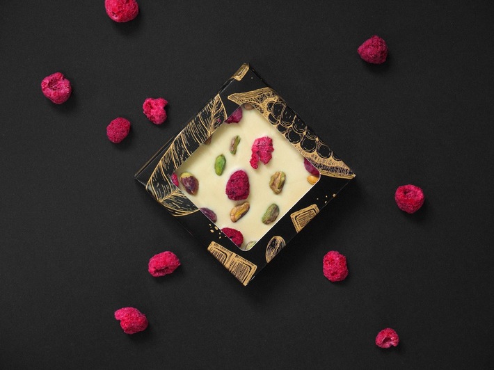 Kombiniert werden Zartbitter-, Vollmilch- und weiße Schokolade sowie die Ruby