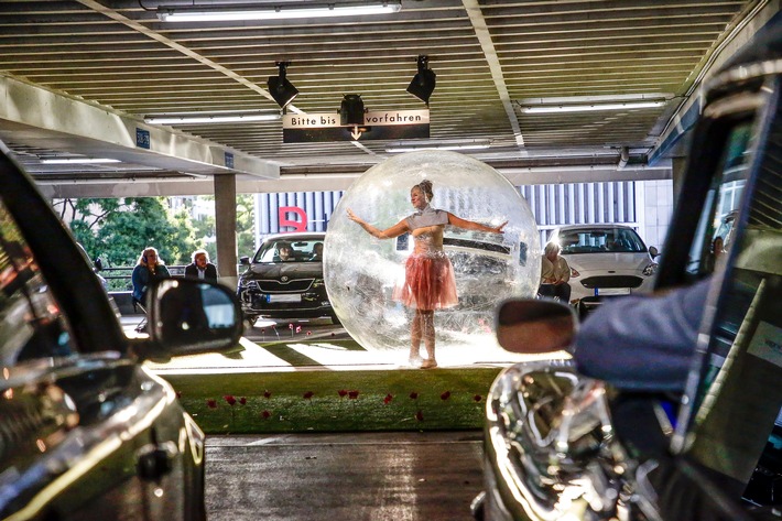 Für die Inszenierung „Vorher/Nachher – die Verwandlung der Welt“ wird das Breuninger Parkhaus erstmals als kultureller Raum genutzt. Seit der Premiere am 29. Juni 2020 können Zuschauer einen besonderen Theaterabend auf einem Parkdeck in den eigenen Fahrzeugen erleben. Das Ensemble von LOKSTOFF! führt dabei spektakulär in aufblasbaren Laufbällen durch die Adaption von Franz Kafkas Erzählung „Die Verwandlung“ und nimmt das Publikum mit auf eine emotionale Reise.