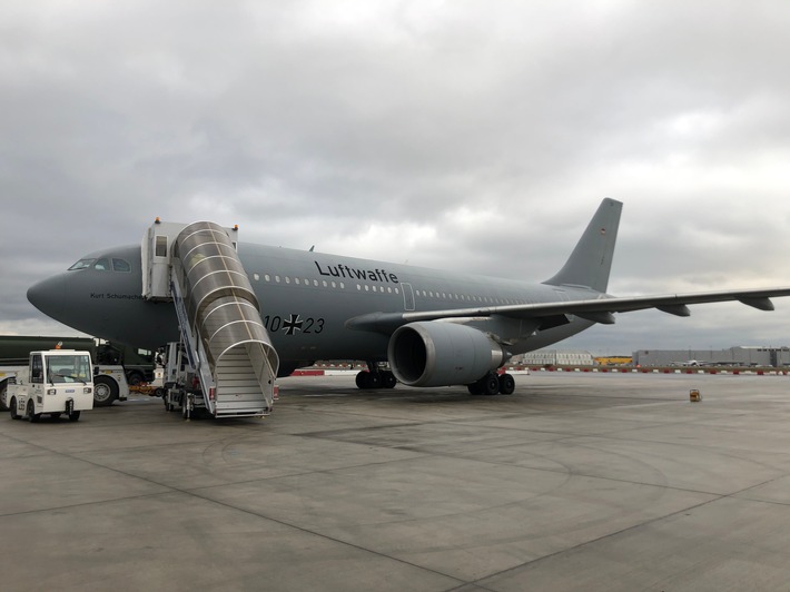 Auch die Luftwaffe unterstützt das Amtshilfeersuchen Armeniens. Oberst Daniel Draken, Kommandeur der Flugbereitschaft des Bundesministeriums der Verteidigung: „Die Flugbereitschaft freut sich, einen bescheidenen Beitrag für humanitäre Zwecke leisten zu können.“ Für den Transport des Personals und medizinischer Ausrüstung wird durch das European Air Transport Command kurzfristig am 13.07.2020 ein A310 MRTT der Flugbereitschaft des Bundesministeriums der Verteidigung zur Verfügung gestellt. Dieser startet voraussichtlich um 10 Uhr Ortszeit vom militärischen Teil des Flughafens Köln-Wahn in die Hauptstadt Armeniens, Jerewan.