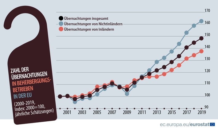 Seit 2009 ist die Zahl der Übernachtungen in Beherbergungsbetrieben in der EU