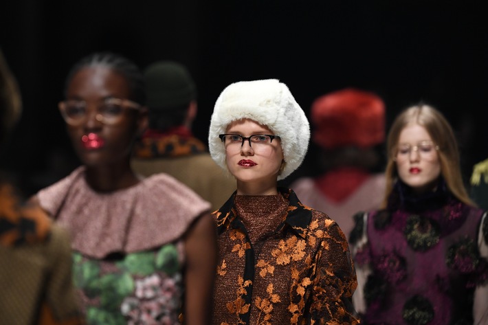 Die passenden Brillen hatte die Designerin, wie bereits zur Fashion Week 2019,