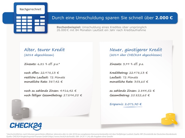 – Kreditnehmer schulden bei CHECK24 im Schnitt 23.969 Euro um und