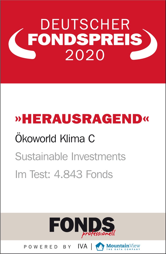 ÖKOWORLD KLIMA (WKN A0MX8G) als „HERAUSRAGEND“ beurteilt und gewinnt den