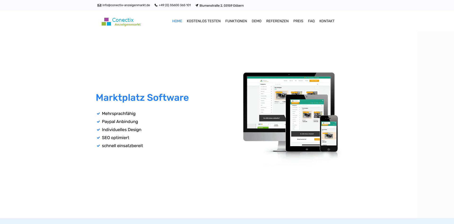 Da allerdings immer mehr Unternehmen ins Internet vordringen, wird es immer schwerer für Unternehmen sich von der breiten Masse abzuheben. Doch auch hierfür hat die Marktplatz-Software conedix-anzeigenmarkt eine Lösung. Denn das Angebot dieser Plattform beschränkt sich nicht nur auf reines Mail-Marketing oder die Suchmaschinen-Optimierung (SEO) und endet nicht mit der Möglich für die nutzenden User sich auf der Plattform ein Kundenkonto anzulegen. Diese Marktplatz-Software bietet auch für den Betreiber der Plattform sehr viel, wie die Verwaltung der Userdaten und auch die Möglichkeit Statistiken zu erstellen. Das Layout der Plattformen ist dafür schlicht gehalten, was aber auch Usern entgegenkommt, die einfache Menüführung lieben. Hintergrund ist, dass die User nicht nur zum Kauf der Produkte und Dienstleistungen angeregt werden sollen, sondern auch von der einfachen Menüführung begeistert sind. Die Marktplatz-Software conedix-anzeigenmarkt bietet dafür die besten Voraussetzungen und ist ideal für Unternehmen geeignet, die ihren Onlineauftritt endlich realisieren möchten und das möglichst ohne externe Hilfe.