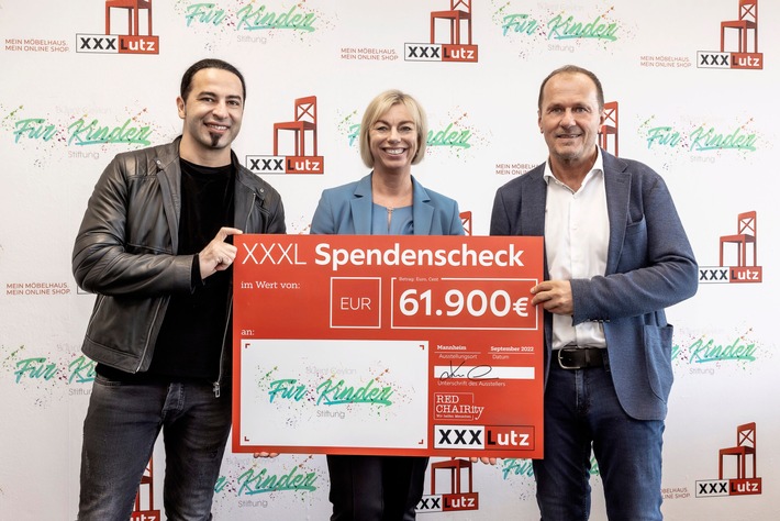 Strahlende Gesichter bei allen Beteiligten, weil es Comedian Bülent Ceylan zusammen mit der XXXLutz Unternehmensgruppe gelungen ist, genau den Kindern ein Lächeln ins Gesicht zu zaubern, die nicht auf der Sonnenseite des Lebens stehen: Mit der großen und bis dato in dieser Form einmaligen Malaktion hatten die XXXLutz Möbelhäuser bundesweit Kinder dazu aufgerufen, ihr ganz eigenes Bild zu malen, wie sie auf dem Roten Stuhl wohnen. Pro eingesandtem Bild hatte XXXLutz eine Spende in Höhe von 100 Euro an die „Bülent Ceylan für Kinder Stiftung“ versprochen – und auch Wort gehalten: Denn jetzt nahm der erst vor wenigen Tagen mit dem Deutschen Fernsehpreis ausgezeichnete Comedian am Weltkindertag den XXXL-Scheck im Mannheimer Möbelhaus mit dem Roten Stuhl aus den Händen von Alois Kobler, CEO bei XXXLutz Deutschland, entgegen – herausgekommen ist die beeindruckende Spendensumme von sage und schreibe 61.900 Euro. Absender der Spende ist mit „RED CHAIRity (https://redchairity.com/)“ die Hilfsorganisation der XXXLutz Unternehmensgruppe, die sich um die Umsetzung der gemeinnützigen Projekte kümmert und so seit 2010 auf ganz unterschiedliche Art und Weise weltweit humanitäre Hilfe leistet.