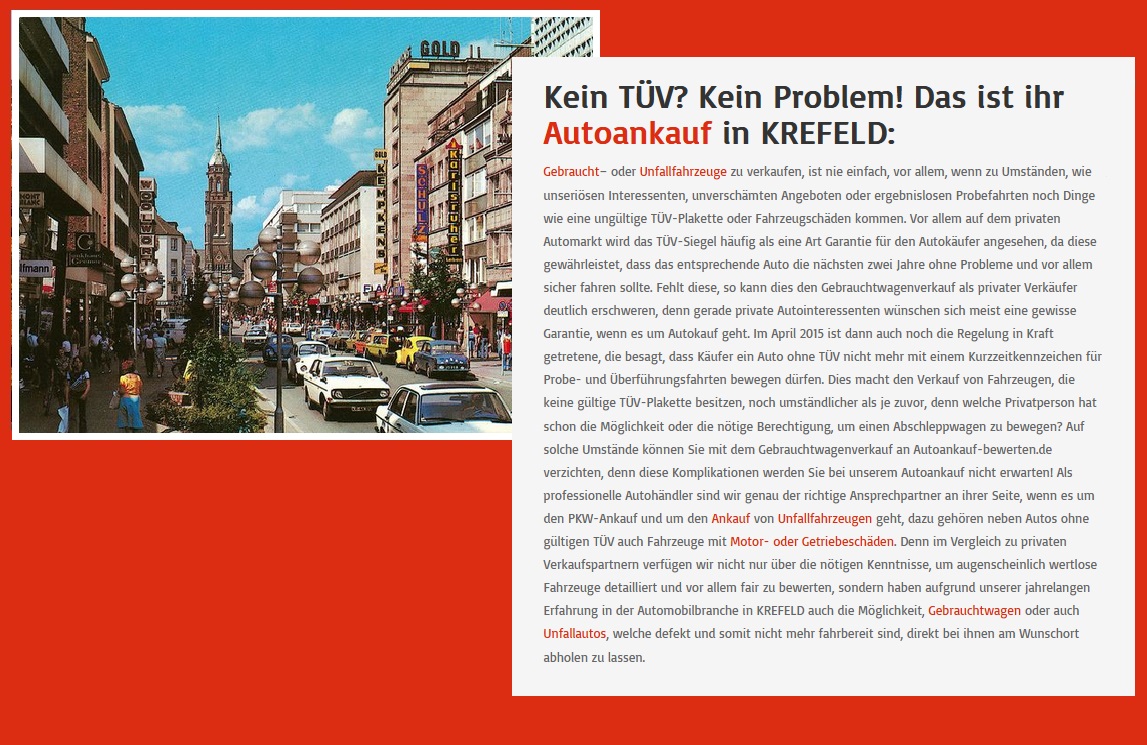Autoankauf Wolfenbüttel: Der Autohändler Auto-Ankuf-24.de kauft Fahrzeuge aller Art unabhängig von der Jahreszeit und dem Zustand stets zu Bestpreisen an und verzichtet dabei auf jede Sachmängelhaftung durch den Verkäufer.