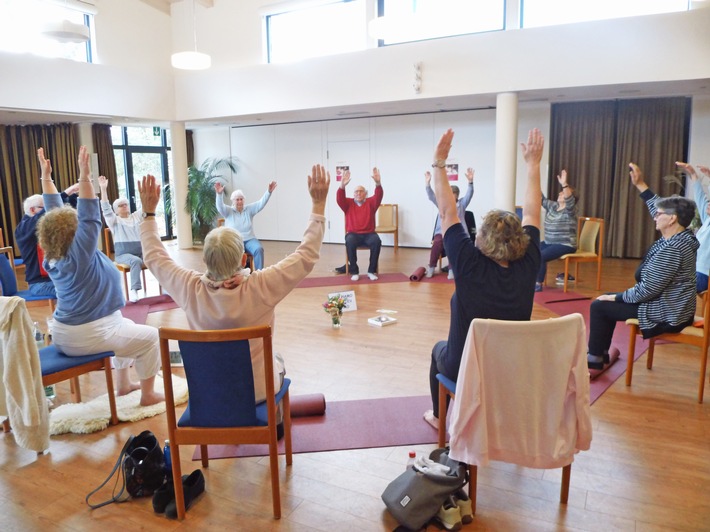 kostenloses Yoga, barrierefrei, auf dem Stuhl und auch für Männer. Die älteste