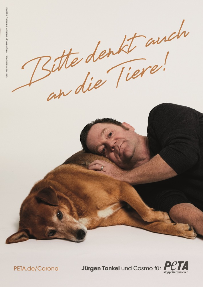 München / Stuttgart (ots) – „Bitte denkt auch an die Tiere!“: Mit diesem eindringlichen Appell möchte der bekannte Schauspieler Jürgen Tonkel gemeinsam mit Hund Cosmo (https://www.peta.de/neues-video-schauspieler-juergen-tonkel-appe lliert-an-alle-tierfreunde-tiere) die Aufmerksamkeit während der Corona-Krise besonders auf unsere tierischen Begleiter lenken. Der Münchner appelliert auf einem neuen Fotomotiv (https://www.peta.de/juergen-tonkel-corona) an alle Menschen, sich Zeit für die tierischen Freunde zu nehmen, sie ausreichend auszulasten und für den Notfall vorzusorgen. Er rät Hundehaltern für den Fall der Quarantäne, schon jetzt Gassigänger zu organisieren und für alle tierischen Mitbewohner einen kleinen Notvorrat anzulegen. Zudem weist Tonkel auf die vielen heimatlosen Vierbeiner hin, die auch in dieser Zeit auf menschliche Fürsorge angewiesen sind.