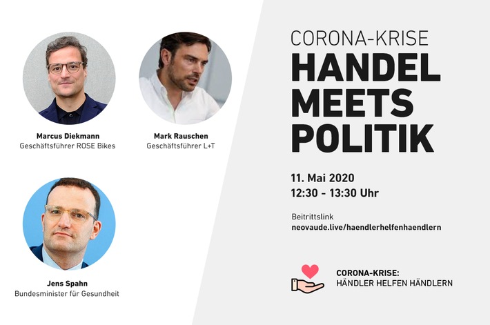 Berlin (ots) – Ab Montag dürfen deutschlandweit wieder alle Geschäfte unabhängig von der Größe ihrer Verkaufsfläche die Ladentüren öffnen. Ob nach wochenlanger Abstinenz der Kaufrausch über die Verbraucher hereinbricht, bleibt fraglich. Bei den geltenden Abstandsregeln, Hygienevorschriften und der Schutzmaskenpflicht kommen nur wenige in Kauflaune. Die Situation im Handel bleibt weiter angespannt, viele Unternehmen stehen vor einer existenziellen Bedrohung. Die Pro-Bono-Initiative „Händler-helfen-Händlern“ lädt zum Digital-Talk mit Gesundheitsminister Jens Spahn ein, der sich der Diskussion um die prekäre Lage stellt.